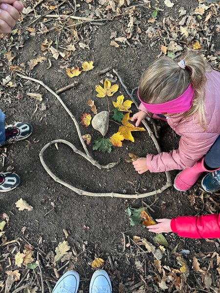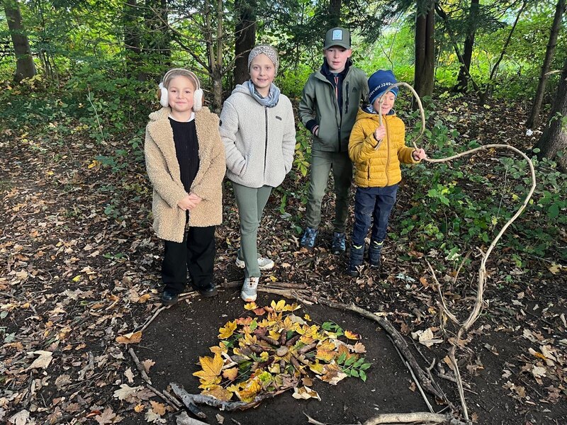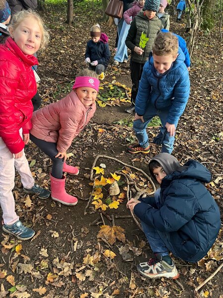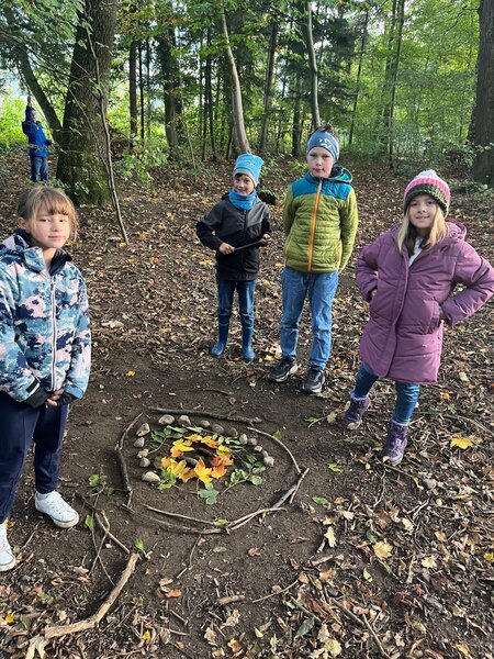 Dabei gab es vieles zu sehen – von unterschiedlichen Baumarten bis hin zu kleinen Besonderheiten am Waldboden. Mit großer Freude sammelten die Kinder Naturmaterialien und gestalteten daraus kreative Naturmandalas, die den Wald nun mit bunten Mustern schmücken. Ein erlebnisreicher und lehrreicher Vormittag in der Natur!